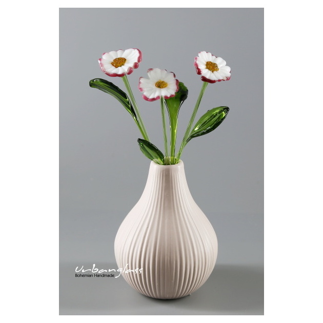 Originální skleněná dekorace, která nikdy neuvadne, vhodná jako dárek nebo pro potěšení. Cena za jeden květ včetně listu, bez vázičky. Možno přikoupit samotné květinky (á 160,-) bez listů nebo jen lístky (á 85,-), uveďte, prosím, do poznámky k objednávce.